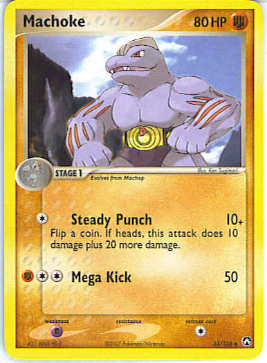 Type | Fighting | Pokemon serie | Power Keepers | Stadie | Stage 1 | HP | 80 | Sjældenhed | Uncommon | Tilbagetrækning | 1 | Svaghed | P | Kortnummer | 33 | Evne |