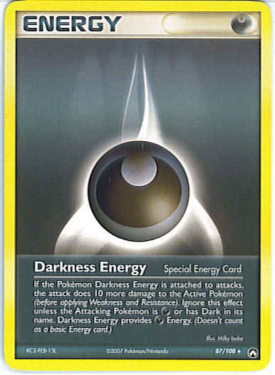 If the Pokemon Darkness Energy is attached to attacks, the attack does 10 more damage to the Active Pokemon (before applying Weakness and Resistance). Ignore this effect unless the Attacking Pokemon is D or has Dark in its name. Darkness Energy provides D Energy. (Doesn't count as a basic Energy card.)