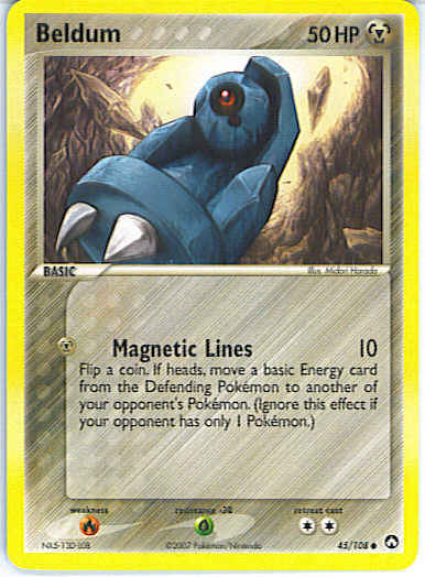 Evne [M] Magnetic Lines (10) Flip a coin. If heads, move a basic Energy card from the Defending Pokemon to another of your opponent's Pokemon. (Ignore this effect if your opponent has only 1 Pokemon.)
