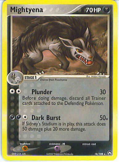 Type | Darkness | Pokemon serie | Power Keepers | Stadie | Stage 1 | HP | 70 | Sjældenhed | Rare | Modstand | P | Svaghed | F | Kortnummer | 18 | Evne |