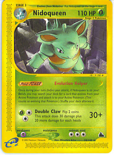 Type | Grass | Pokemon serie | Skyridge | Stadie | Stage 2 | HP | 110 | Sjældenhed | Rare | Tilbagetrækning | 3 | Svaghed | P | Kortnummer | 22 | Evne | [CCG] Double Claw (30+) Flip 2 coins. This attack does 30 damage plus 20 more damage for each heads.