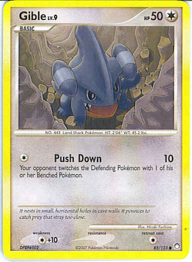 [C] Push Down (10) Your opponent switches the Defending Pokemon with 1 of his or her Benched Pokemon.