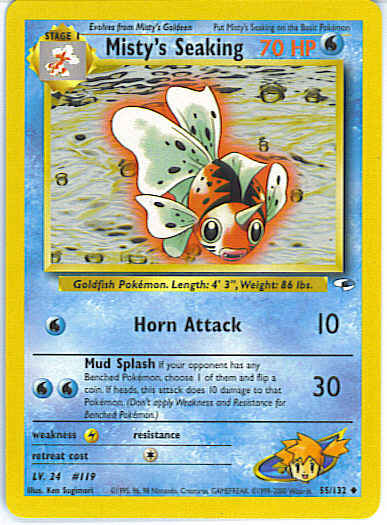 Type | Water | Pokemon serie | Gym Heroes | Stadie | Stage 1 | HP | 70 | Sjældenhed | Uncommon | Tilbagetrækning | 1 | Svaghed | L | Kortnummer | 55 | Evne |