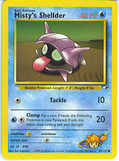 Type | Water | Pokemon serie | Gym Heroes | Stadie | Basic | HP | 40 | Sjældenhed | Common | Tilbagetrækning | 1 | Svaghed | L | Kortnummer | 89 | Evne |