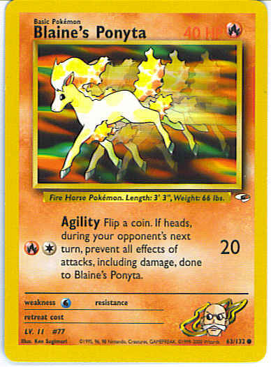 [CR] Agility (20) Flip a coin. If heads, during your opponent's next turn, prevent all effects of attacks, including damage, done to Blaine's Ponyta.