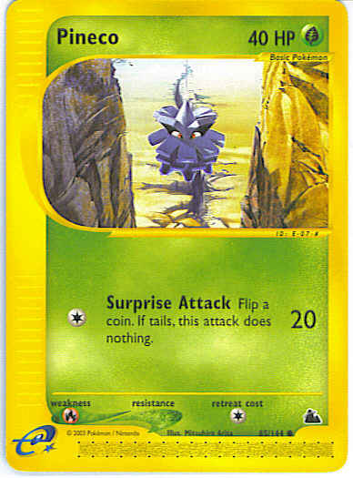 Type | Grass | Pokemon serie | Skyridge | Stadie | Basic | HP | 40 | Sjældenhed | Common | Tilbagetrækning | 1 | Svaghed | R | Kortnummer | 85 | Evne | [C] Surprise Attack (20) Flip a coin. If tails, this attack does nothing.