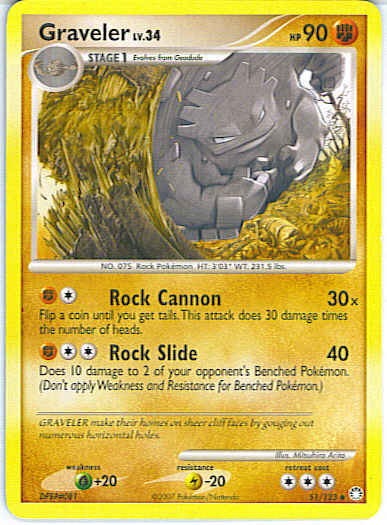 Type | Fighting | Pokemon serie | Mysterious Treasures | Stadie | Stage 1 | HP | 90 | Sjældenhed | Uncommon | Tilbagetrækning | 3 | Modstand | L-20 | Svaghed | G+20 | Kortnummer | 51 | Evne |