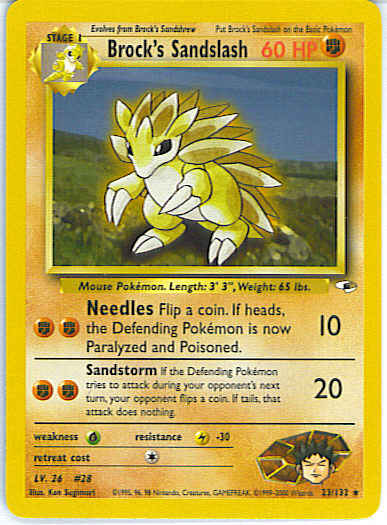 Type | Fighting | Pokemon serie | Gym Heroes | Stadie | Stage 1 | HP | 60 | Sjældenhed | Rare | Tilbagetrækning | 1 | Modstand | L | Svaghed | G | Kortnummer | 23 | Evne |