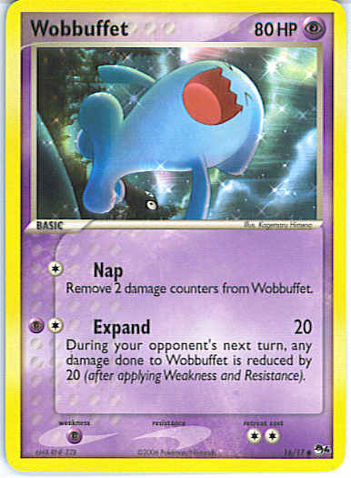| Evne2 | [C] Nap - Remove 2 damage counters from Wobbuffet. [CP] Expand (20) During your opponent's next turn, any damage done to Wobbuffet is reduced by 20 (after applying Weakness and Resistance).