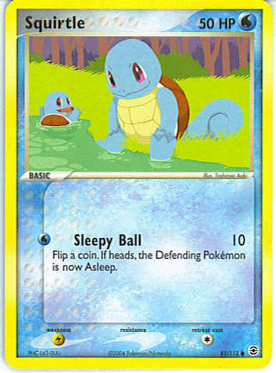 Type | Water | Pokemon serie | Fire Red Leaf Green | Stadie | Basic | HP | 50 | Sjældenhed | Common | Tilbagetrækning | 1 | Svaghed | L | Kortnummer | 82 | Evne | [W] Sleepy Ball (10) Flip a coin. If heads, the Defending Pokemon is now Asleep. | Evne2 | [W] Sleepy Ball (10) Flip a coin. If heads, the Defending Pokemon is now Asleep. | Kunstner | Toshinao Aoki |