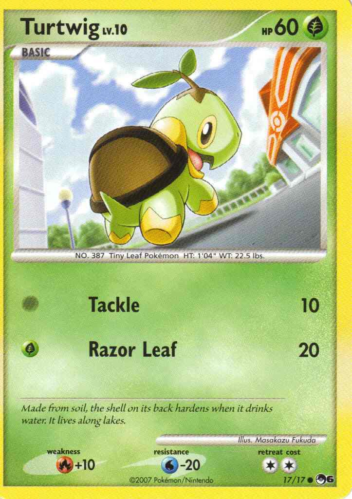 Type | Grass | Pokemon serie | OP Series 6 | Stadie | Basic | HP | 60 | Sjældenhed | Common | Tilbagetrækning | 2 | Modstand | W-20 | Svaghed | R+10 | Kortnummer | 17 | Evne |