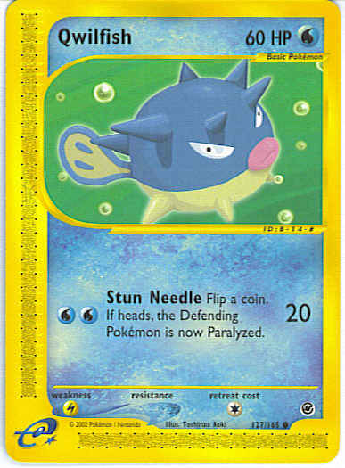 Type | Water | Pokemon serie | Expedition | Stadie | Basic | HP | 60 | Sjældenhed | Common | Tilbagetrækning | 1 | Svaghed | L | Kortnummer | 127 | Evne |