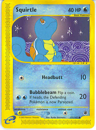 Type | Water | Pokemon serie | Expedition | Stadie | Basic | HP | 40 | Sjældenhed | Common | Tilbagetrækning | 1 | Svaghed | L | Kortnummer | 132 | Evne |