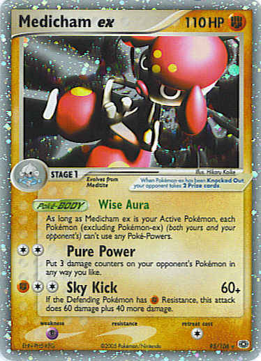Type | Fighting | Pokemon serie | Emerald | Stadie | Stage 1 | HP | 110 | Sjældenhed | Ultra-Rare | Tilbagetrækning | 1 | Svaghed | P | Kortnummer | 95 | Evne | [CC] Pure Power - Put 3 damage counters on your opponent's Pokemon in any way you like. [CCF] Sky Kick (60+) If the Defending Pokemon has F Resistance, this attack does 60 damage plus 40 more damage. | Evne2 | [CC] Pure Power - Put 3 damage counters on your opponent's Pokemon in any way you like. [CCF] Sky Kick (60+) If the Defending Pokemon has F Resistance, this attack does 60 damage plus 40 more damage. | Kunstner | Hikaru Koike |
