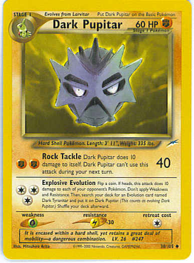 Type | Fighting | Pokemon serie | Neo Destiny | Stadie | Stage 1 | HP | 60 | Sjældenhed | Uncommon | Tilbagetrækning | 1 | Modstand | L | Svaghed | G | Kortnummer | 38 | Evne |