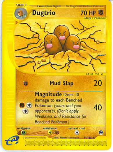 Type | Fighting | Pokemon serie | Expedition | Stadie | Stage 1 | HP | 70 | Sjældenhed | Rare | Tilbagetrækning | 1 | Modstand | L | Svaghed | G | Kortnummer | 44 | Evne |