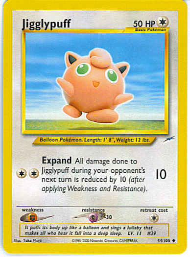 Type | Colorless | Pokemon serie | Neo Destiny | Stadie | Basic | HP | 50 | Sjældenhed | Uncommon | Tilbagetrækning | 1 | Modstand | P | Svaghed | F | Kortnummer | 44 | Evne |