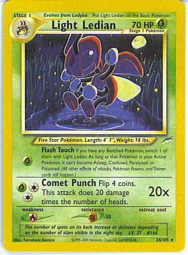 Type | Grass | Pokemon serie | Neo Destiny | Stadie | Stage 1 | HP | 70 | Sjældenhed | Rare | Modstand | F | Svaghed | R | Kortnummer | 24 | Evne |