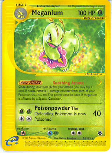 Type | Grass | Pokemon serie | Expedition | Stadie | Stage 2 | HP | 100 | Sjældenhed | Rare | Tilbagetrækning | 2 | Modstand | W | Svaghed | R | Kortnummer | 54 | Evne |