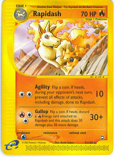 Evne2[CC] Agility (10) Flip a coin. If heads, prevent all effects of attacks, including damage, done to Rapidash during your opponent's next turn.