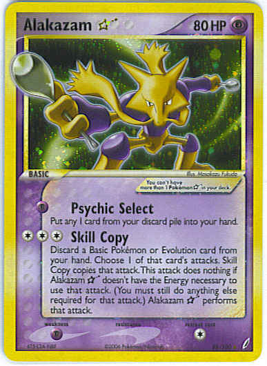 [CCC] Skill Copy - Discard a Basic Pokemon or Evolution card from your hand. Choose 1 of that card's attacks. Skill Copy copies that attack. This attack does nothing if Alakazam * doesn't have the Energy necessary to use that attack. (You must still do anything else required for that attack.) Alakazam * performs that attack.