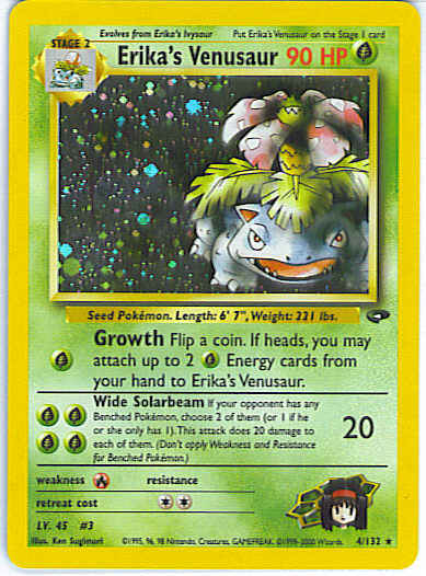 Type | Grass | Pokemon serie | Gym Challenge | Stadie | Stage 2 | HP | 90 | Sjældenhed | Rare | Tilbagetrækning | 2 | Svaghed | R | Kortnummer | 4 | Evne |