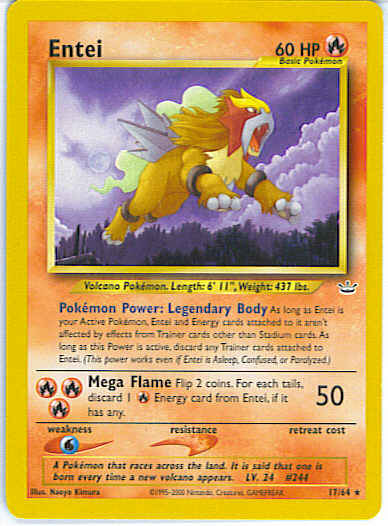 Evne from Trainer cards other than Trainer cards other than Stadium cards. As long as this power is active, discard all Trainer cards attached to Entei. (This power works even if Entei is Asleep, Confused, or Paralyzed.)