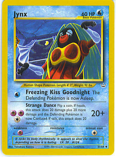Type | Water | Pokemon serie | Neo Revelation | Stadie | Basic | HP | 60 | Sjældenhed | Uncommon | Tilbagetrækning | 2 | Svaghed | P | Kortnummer | 31 | Evne |