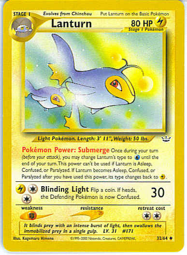 Type | Lightning | Pokemon serie | Neo Revelation | Stadie | Stage 1 | HP | 80 | Sjældenhed | Uncommon | Tilbagetrækning | 2 | Svaghed | F | Kortnummer | 32 | Evne |