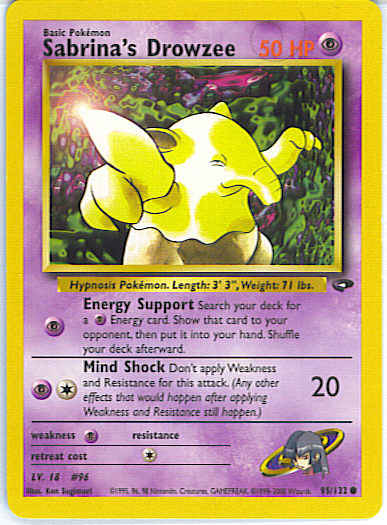 Type | Psychic | Pokemon serie | Gym Challenge | Stadie | Basic | HP | 50 | Sjældenhed | Common | Tilbagetrækning | 1 | Svaghed | P | Kortnummer | 95 | Evne |