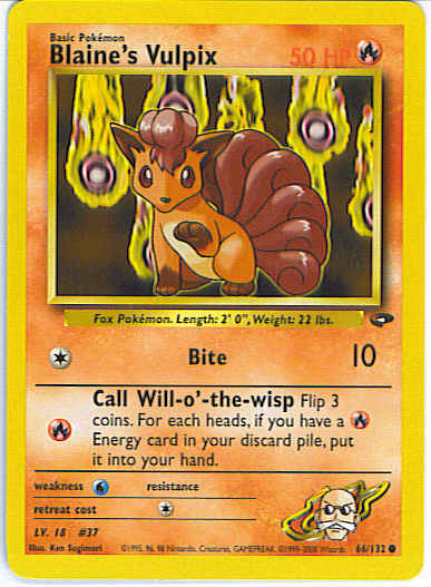 Type | Fire | Pokemon serie | Gym Challenge | Stadie | Basic | HP | 50 | Sjældenhed | Common | Tilbagetrækning | 1 | Svaghed | W | Kortnummer | 66 | Evne |