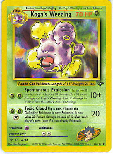 [GG] Spontaneous Explosion (10+) Flip a coin. If heads, this attack does 10 damage plus 30 more damage and Koga's Weezing does 30 damage to itself; if tails, this attack does 10 damage.