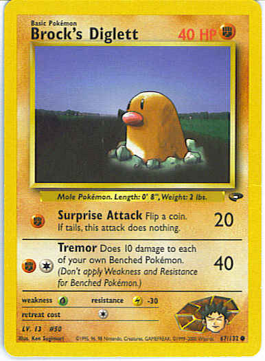 Type | Fighting | Pokemon serie | Gym Challenge | Stadie | Basic | HP | 40 | Sjældenhed | Common | Tilbagetrækning | 1 | Modstand | L | Svaghed | G | Kortnummer | 67 | Evne |
