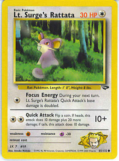 [C] Focus Energy - During your next turn, Lt. Surge's Rattata's Quick Attack's base damage is doubled.