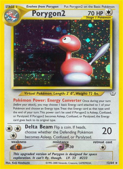 Type | Colorless | Pokemon serie | Neo Revelation | Stadie | Stage 1 | HP | 70 | Sjældenhed | Rare | Tilbagetrækning | 1 | Modstand | P | Svaghed | F | Kortnummer | 12 | Evne |