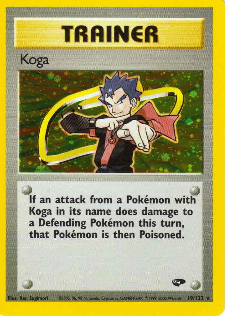 If an attack from a Pokemon with Koga in its name does damage to a Defending Pokemon this turn, that Pokemon is then Poisoned.