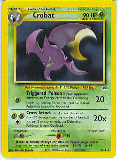 Type | Grass | Pokemon serie | Neo Revelation | Stadie | Stage 2 | HP | 90 | Sjældenhed | Rare | Tilbagetrækning | 1 | Modstand | F | Svaghed | P | Kortnummer | 4 | Evne |