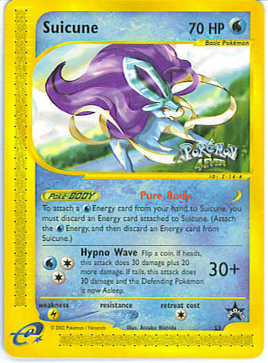 Type | Water | Pokemon serie | WoTC Promo | Stadie | Basic | HP | 70 | Sjældenhed | Promo | Tilbagetrækning | 1 | Svaghed | L | Kortnummer | 53 | Evne |