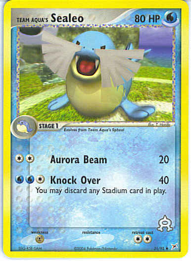 Type | Water | Pokemon serie | Team Aqua-Team Magma | Stadie | Stage 1 | HP | 80 | Sjældenhed | Uncommon | Tilbagetrækning | 2 | Svaghed | M | Kortnummer | 31 | Evne | [CC] Aurora Beam (20) [CWW] Knock Over (40) You may discard any Stadium card in play.