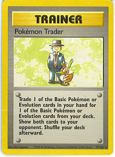 Trade 1 of the Basic Pokemon or Evolution cards in your hand for 1 of the Basic Pokemon or Evolution cards from your deck. Show both cards to your opponent. Shuffle your deck afterward.