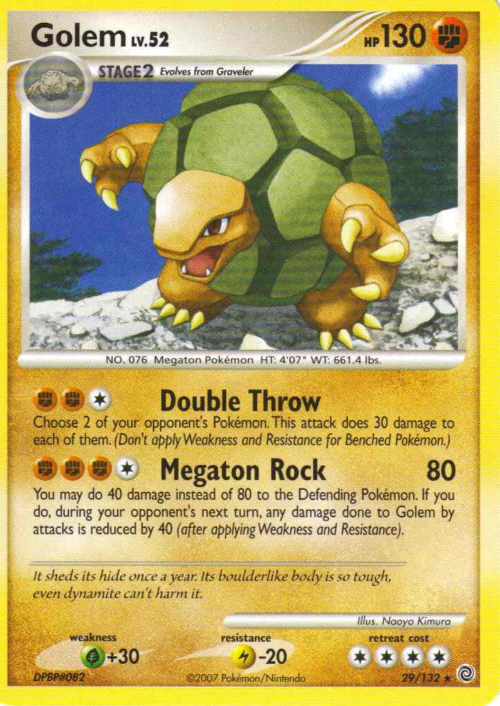 [CFFF] Megaton Rock (80) You may do 40 damage instead of 80 to the Defending Pokemon. If you do, during your opponent's next turn, any damage done to Golem by attacks is reduced by 40 (after applying Weakness and Resistance).