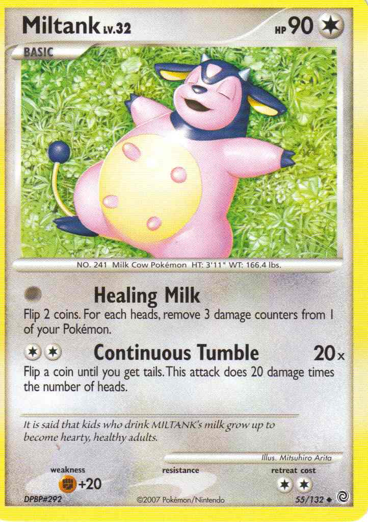 [0] Healing Milk - Flip 2 coins. For each heads, remove 3 damage counters from 1 of your Pokemon.