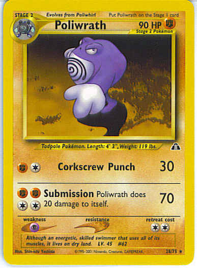 Type | Fighting | Pokemon serie | Neo Discovery | Stadie | Stage 2 | HP | 90 | Sjældenhed | Rare | Tilbagetrækning | 2 | Svaghed | P | Kortnummer | 28 | Evne |