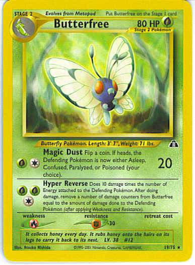 [CGG] Hyper Reverse - Does 10 damage times the number of Energy cards attached to the Defending Pokemon. After doing damage, remove a number of damage counters from Butterfree equal to the amount of damage done to the Defending Pokemon (after applying Weakness and Resistance).
