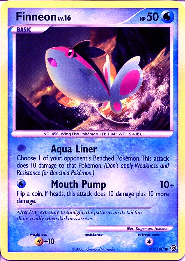 Type | Water | Pokemon serie | Stormfront | Stadie | Basic | HP | 50.0 | Sjældenhed | Common | Tilbagetrækning | 1.0 | Svaghed | L+10 | Kortnummer | 61 | Evne |