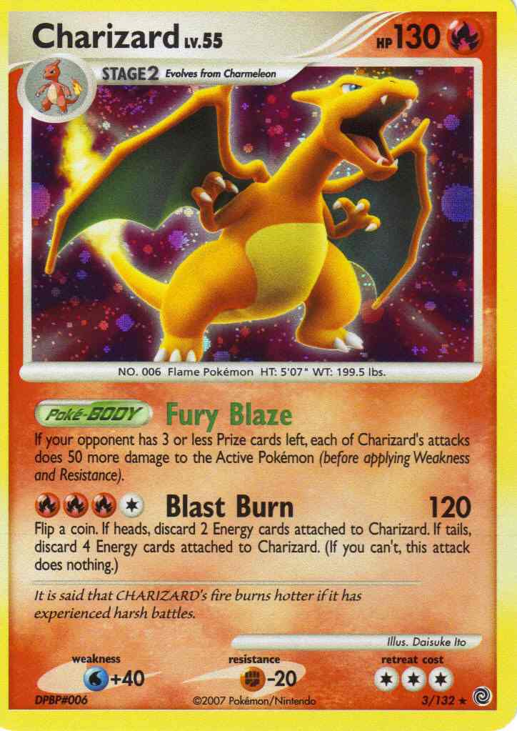 [CRRR] Blast Burn (120) Flip a coin. If heads, discard 2 Energy cards attached to Charizard. If tails, discard 4 Energy cards attached to Charizard. (If you can't, this attack does nothing.)