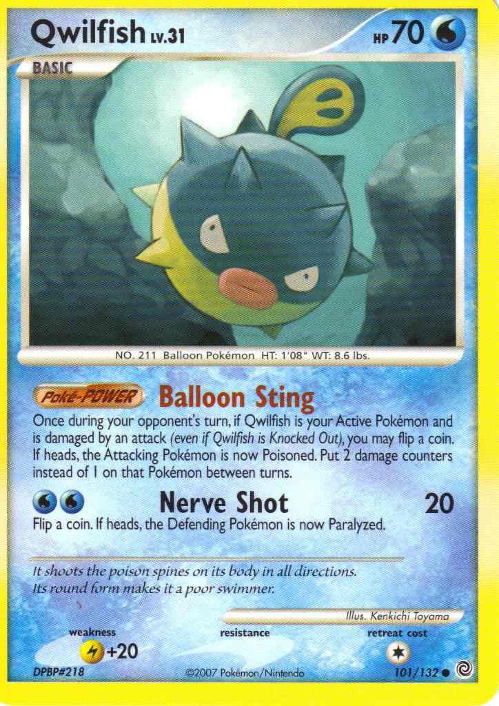 Type | Water | Pokemon serie | Secret Wonders | Stadie | Basic | HP | 70.0 | Sjældenhed | Common | Tilbagetrækning | 1.0 | Svaghed | L+20 | Kortnummer | 101 | Evne |