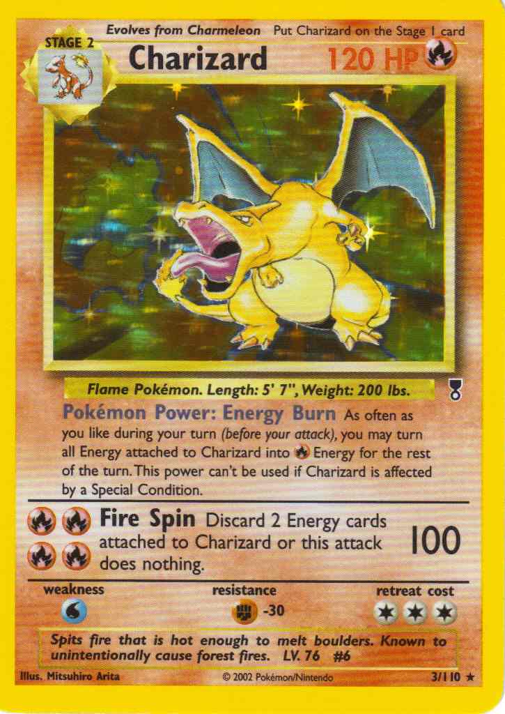 Type | Fire | Pokemon serie | Legendary Collection | Stadie | Stage 2 | HP | 120 | Sjældenhed | Rare | Tilbagetrækning | 3 | Modstand | F | Svaghed | W | Kortnummer | 3 | Evne |