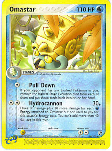 [CC] Hydrocannon (30+) Does 30 damage plus 20 more damage for each W Energy attached to Omastar but not used to pay for this attack's Energy cost. You can't add more than 40 damage in this way.