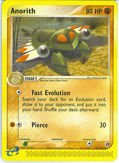 Type | Fighting | Pokemon serie | Sandstorm | Stadie | Stage 1 | HP | 80 | Sjældenhed | Uncommon | Tilbagetrækning | 1 | Svaghed | G | Kortnummer | 27 | Evne | [C] Fast Evolution - Search your deck for an Evolution card, show it to your opponent, and put it into your hand. Shuffle your deck afterward. [CF] Pierce (30)